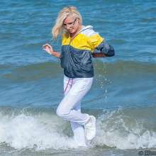 Patricia This is what happens what a wetlook girl takes a walk on the beach. Patricia is back with a new casual clothing session. She choose one of her sport outfits this time and sneakers.
