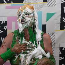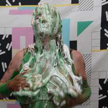 Trans model and rock star Bijoux Cone joins us the latest installment of the Pie Virgin series. She contacted me through IG with the following message "I wanna get slopped!." She gets nailed with several thick and heavy cake batter pies, and thoroughly enjoys herself throughout the scene. She is taken aback as each pie slams in her face while her friend(off camera) can be heard laughing at her situation. Next up is a thick green sliming which she gives a great reaction to followed by several shaving cream pies. Overall she found the events very enjoyable, and expressed interest in returning.