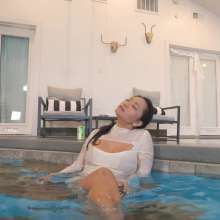 "Reyna Swimming in a Sexy White Dress"