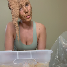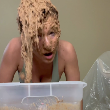 Slimed Models said: In a new TV special, host Scarlett is back to describe a new phenomenon: an addiction to wet dog food. Scarlett explains that people all over the country are finding themselves with an insatiable appetite for wet dog food, buying copious amounts of it, and covering themselves from head to toe with it. However, because no one would volunteer to appear on camera to demonstrate this addiction, Scarlett had to demonstrate the infatuation with dog food herself! Poor Scarlett!