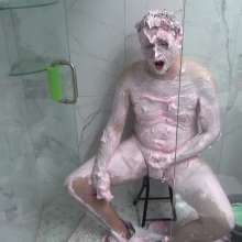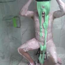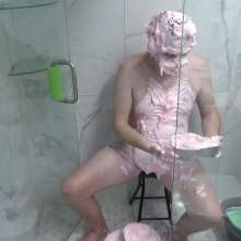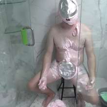 The spin for pie game of which I am the creator of gets me good with its messiest space, A trip to the pie-O-matic! A fictional contraption that Slops you with 8 pies and a bucket of pie slop. I sit in my custom Pie target boxers and take 8 sloppy strawberry pie cream pies and a bucket of green pie cream slop. I enjoy the feel of the mess and stroke my cock through out.