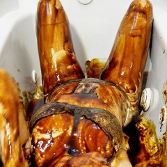White isn't really a good color on me though, so I decided to ruin them with some dark molasses. I got so sticky I could barely get them off afterwards. I'll have to think is some other fun things to do with my new black ones.