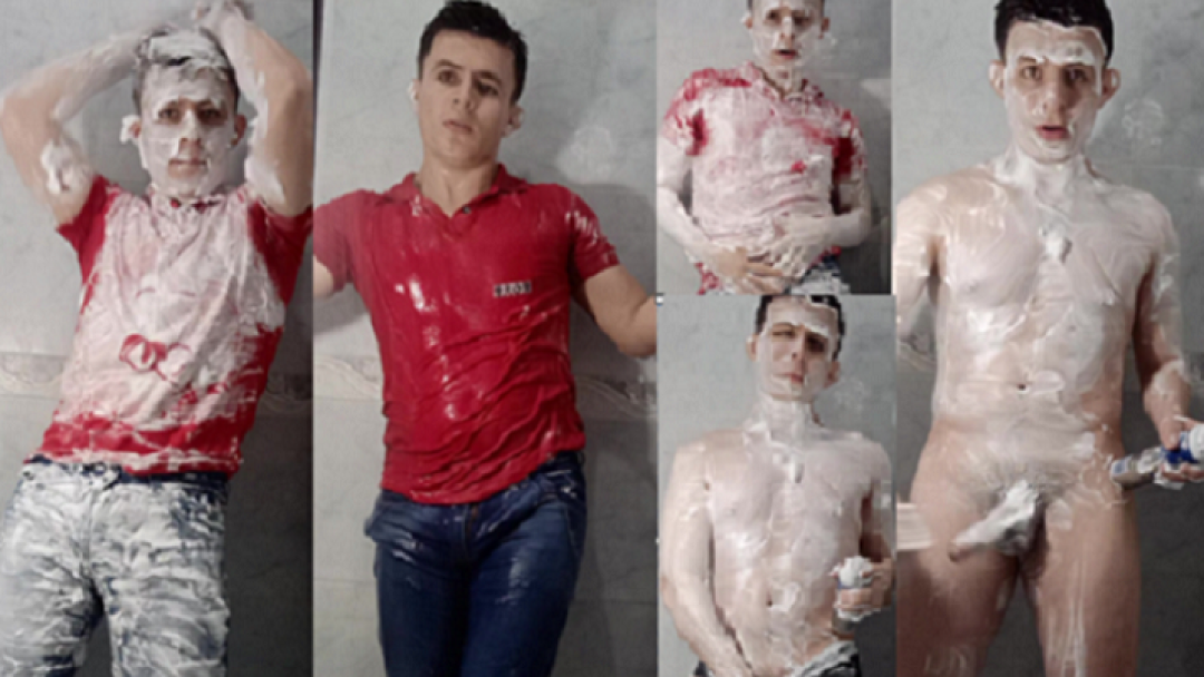 One day, Steve decides to fight boredom and heads to the bathroom. He usually gets wet with his clothes, but this time, wearing his red polo shirt and jeans, he decides to get completely dirty with shaving cream. He has fun and gets completely covered. Then he decides to take a nice shower to clean himself. But once clean, he undresses and gets dirty again, completely naked. And his completely white body is spectacular!
