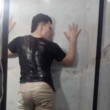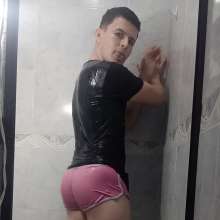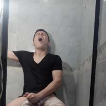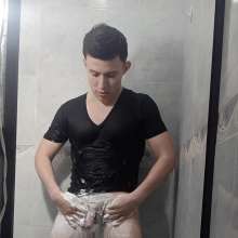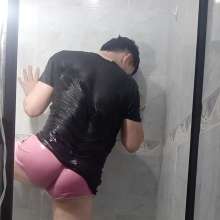 Steve showers in his black T-shirt and pants. He gets completely wet and then takes off his pants. His black T-shirt is shiny and clinging to his body, and his pink boxers are super sexy. Not satisfied, he takes off his boxers and first gets dirty with shaving cream, then begins an intense and long masturbation that will explode on his wet black T-shirt. Intense and sexy!