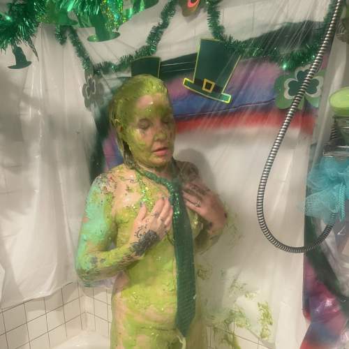 In this scene we have the vote and the results, we held a public vote on Instagram for the public to vote to see who was going to receive the super mega Nickelodeon green sliming and pieing between Zahli and Emily dressed in clubbing attire with nearly 40 red and blue pies.The scene starts off with the girls doing the intro, and introducing themselves before a little bit of a build up chit chat and then the winner which is Emily gets announced and Zahli is so happy she didn't get voted into the tank and starts laughing and gloating a little bit while Emily takes her seat in the Gungetank--let the super mega sliming and pieing commence! The pump starts up and the slime starts dropping at a very high volume causing a large amount of shock from Emily which is both visibly and verbally obvious! She does several full facials and a lot of dress filling and her dress fills up quite a bit and she can't work out how to get it out of her dress at first and she is having all sorts of trouble with her dress filling up as she laughs and squeals as her dress fills up even more.The first 5 minutes of the sliming is just straight Gungetanking. Around 5 minutes in, the producer gets up to deliver the pies and has a pretty serious but movie like mishap and going belly up on the slippery slimy tarp and the girls crack up laughing at me for it. The pies start getting delivered, red and blue pies that are coming in from all directions to destroy Emily from basic pies in the face to full face pie sandwiches and then a slight body pieing as well, Emily then stands up and turns around to get pied in the back, the slime doesn't stop and continues to flow over Emily as she's copping pie after pie, the last 2 pies I ask where she wants them ans she says in the face, so I decided to try out what throwing a pie would do and it worked a treat as it splattered all over her face and just stuck to her face, once the pies were finished Emily continues to receive a mega sliming with plenty of good facial coverage and and total coverage. The scene closes out with Emily doing the outro. Hope you guys like the video and get involved in our next vote.