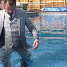 On a super hot and muggy day, I decided to take my brand new tailored three piece suit for a dip in the pool. This was actually the first time I've even worn it to work... and its the first time I destroyed it. Went straight to the pool when I got home from the office! Just the thought of doing this was hot, but actually doing it. without hesitation... wow. So wrong... yet, sooo right.