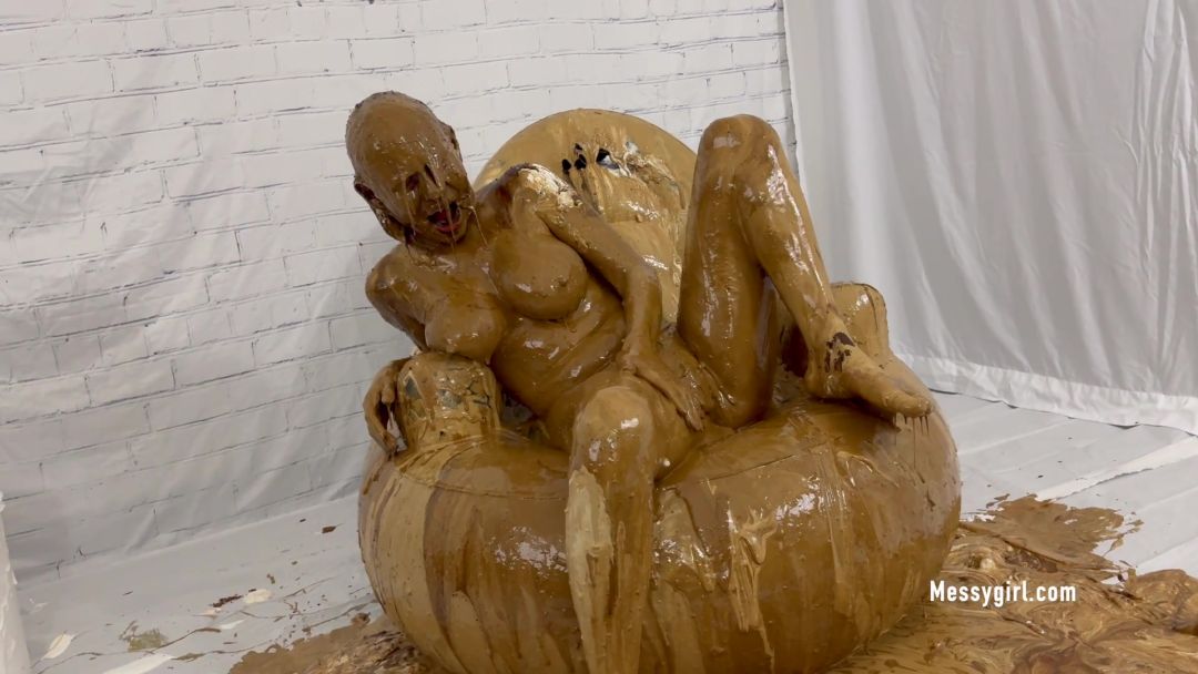 I have all kinds of sweet, sticky and gooey things dumped on me while sitting on an inflatable chair. To spice things up, there is a bullet vibrator stuffed in the front of my panties.
