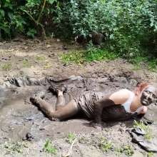 Wearing shorts, white top, white socks and penny loafers I get super muddy and really enjoying getting covered completely.