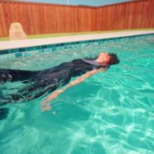 Carla is enjoying the sun outside, wearing a sexy black jumpsuit, a shirt and boots. She first walks around a little bit, showing off her outfit while dry. Then she steps in the pool, first soaking her denim boots and her jumpsuit after when she sits down on the stairs. A few moments later she steps in the pool completely, having her complete outfit soaked and her hair mostly. She floats on her back for a little bit and then she dunks under getting her hair completely wet. She continues to swim for a while, going underwater plenty of times and also diving in a few times. She also shows off her wet outfit plenty of times. At the end of the clip she does a few handstands underwater and when she emerges she lets her hair in the face. Scene contains underwater footage.