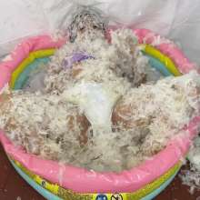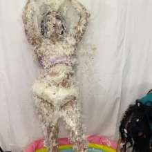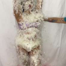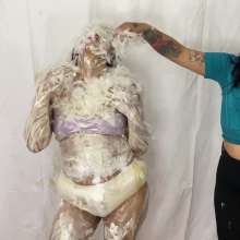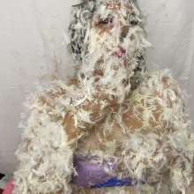Sofia, covered in shaving cream and drenched in breakfast syrup, is wrapped in feathers by her friend Hikari without hesitation. Hikari uses numerous goose feathers to cover her from head to toe for the first time. After looking sexy in her white underwear, she's now the Feather Queen, haha...