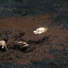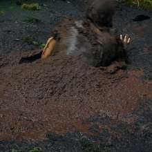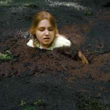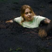 Luna, as often happens to her, falls into a peat bog. She quickly sinks deeper, though she struggles to claw her way out. The mud reaches her head and now she is desperately floundering. Finally, she gives up her struggle, disappearing into the depths.