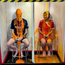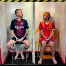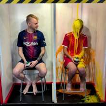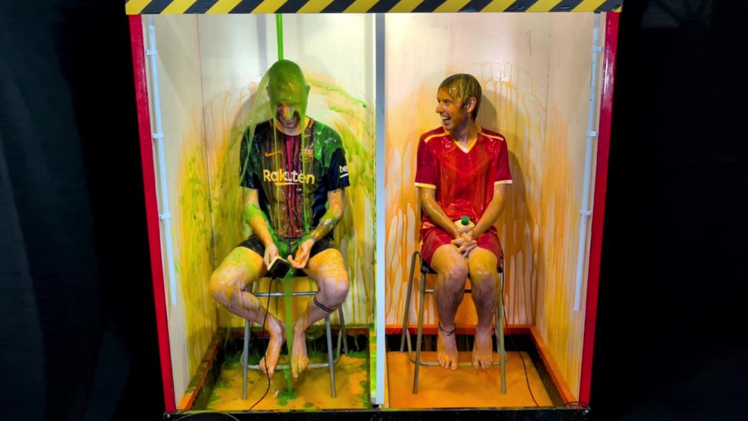 Marc and Jackson go head to head in the gunge tanks playing The 10th Question. Marc wears Barcalona kit with red football kit. Each time they get a question wrong, or the other player gets a question right, someone is gunged. Who will make it through with the most correct answers to move on to the final 10th Question gamble?