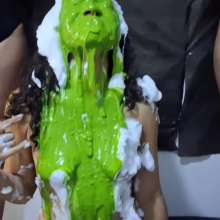 The trio takes turns spinning the wheel, and after several rounds of dancing and getting completely covered in mess, the wheel delivers a shocking twist. As the game intensifies, the two models team up to give their guest an epic surprise: a full-on slime attack! Yellow and green slime pour over her, turning her into a walking mess of goo. By the end of the video, she's drenched from head to toe, completely covered in slime, and it's all caught on camera for your viewing pleasure.