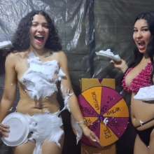 Get ready for a wild, hilarious ride as two models create the ultimate messy challenge wheel! This spinning wheel is filled with outrageous dares like shaving cream pies to the face, egg tosses, crazy dancing, and so much more. The fun really begins when they invite a third model, a long-haired curly-haired beauty who absolutely loves getting messy and taking on all sorts of crazy challenges.