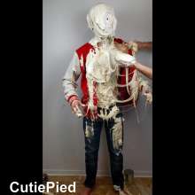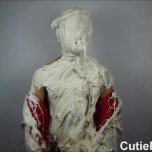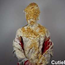 pie after pie, layer after layer, the cute guy is covered with merringue, a nd sometime with other items like cornflakes, cocoa powder, etc...