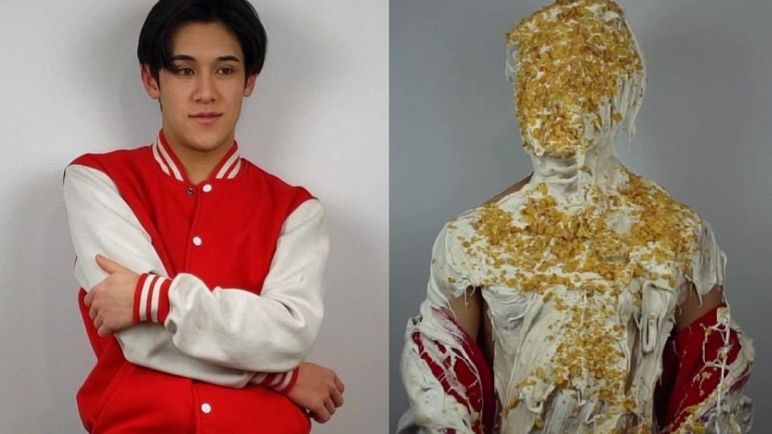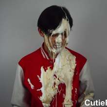 Hakihiko is back, wearing a footballer jacket. In this session he will get messy with a lot of sticky merringue cream pie, and he will end like a big amount of cream!
