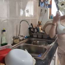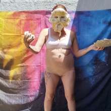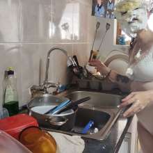 Wearing my huge panties and a bra I take some amazing pies to my face, so totally humiliated I still continue with my house work.