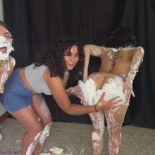Now the girls decide Brenda will worship Heidi's arse. She buries her nose deep in the crack and all the girls love it. Then they decide to make it wam arse worship and they cover Brenda's face, and Heidi's arse with pie... and again Saoirse pushes Brenda's face deep into Heidi's arse crack, with incredible results.