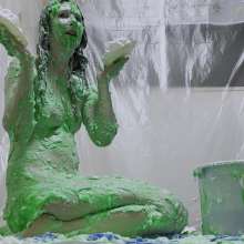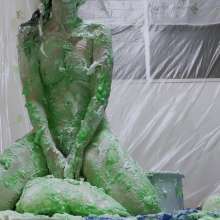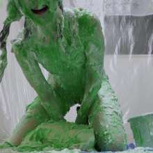 Continuation of part 1. I'm already completely covered in white substances with my long brunette hair down and super messy. I introduce some vibrant bright green slime to the gunge, cream cheese and shaving foam. I still hump the pillow, but also can't help but fuck the messy slop up my hairy pussy with my realistic dildo until I'm completely satisfied with lots of orgasms.