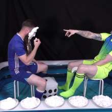 In this episode James plays against Tiggs. Pies are thrown and gunge is poured. The first round is won by Tiggs who pours a bucket of yellow gunge over James. In round two it's James who wins and empties a bucket of light blue gunge over the loser. In the final round the rules of play seem to go a little off and Tiggs ends up shirtless with a bucket of green gunge poured over him. James then joins him and they slop a bit of gunge over each other and down the shorts.