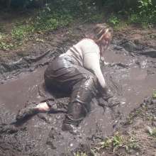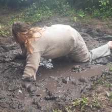 Watch me start out all cute and innocent in baggy denim overalls with a soft cream jersey layered over them, then crawl straight into the thick, creamy mudpit on my hands and knees like I already know what's coming.I roll, slide, and grind until every inch of the denim and jersey is plastered dark and heavy. The cream sweater gets absolutely ruined first, so I peel it off slow and teasing, tossing it aside, leaving me in just the soaked overalls clinging to my body.Round two: I go harder, covering the overalls completely until they're dripping and sagging with mud. Then I pop the straps, let the bib drop, and my bare boobs spill free right into the filth. I smear, splash, and rub thick mud all over them while the heavy denim slides lower on my hips.Final destruction: I dunk my head again and again, full submersion, coming up gasping and coated head to toe in glossy, dripping mud. Hair matted, face masked, boobs shining, overalls barely hanging on I'm a complete muddy mess and loving every second.From girl-next-door to shameless mud-covered slut in one deliciously dirty video. You won't believe how good the filth feels.