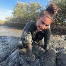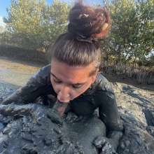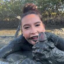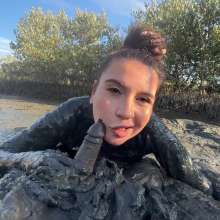 First I'll show her how to play with his cock and balls, grabbing up big, gooey handfuls of muck and pack 'em right around your throbbing dick so you go go rock hard and start quivering like jelly as I teach her the art of the ultimate muddy handjob, followed by a fabulous filthy blowjob! Just suck that mud right off his cock, girl--a little dirt never hurt nobody (besides, it's organic!)