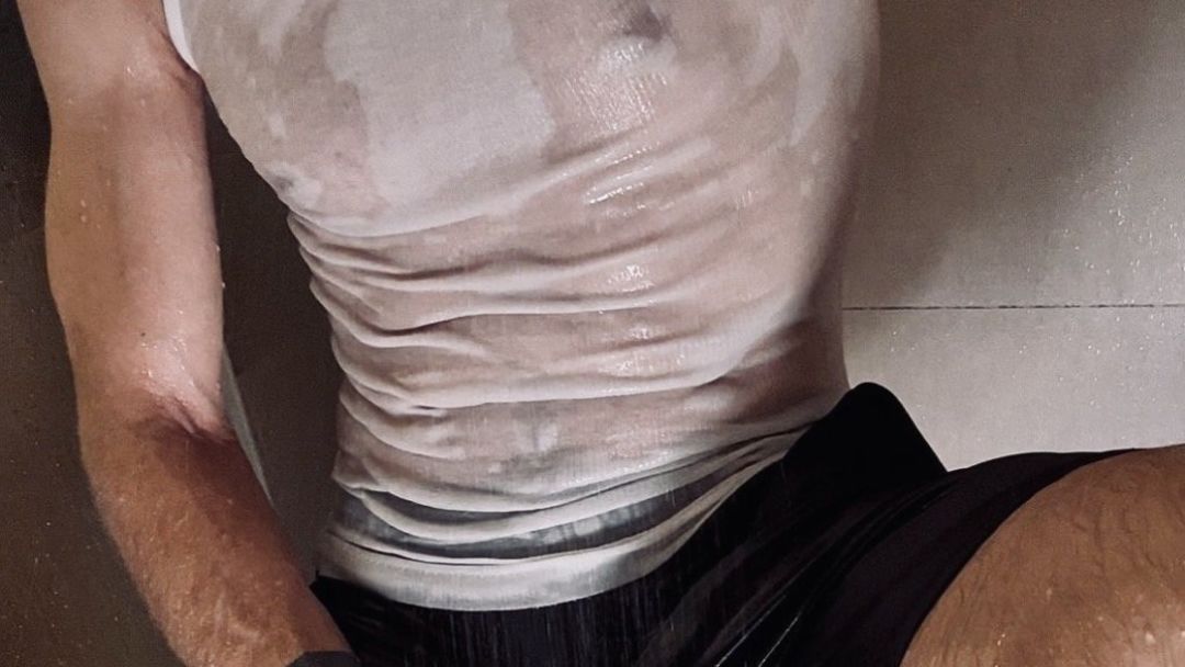 I just wanted to get my dirty sneakers wet in the shower before cleaning then in the washing machine... But my short began to get soaked, so I couldn't resist to get myself completely wet under the hot shower. I got hard immediately and started to play with my hard cock as I felt so sexy and had a nice jack off. I was wearing black Adidas shorts a white tank top white socks and my huarache sneakers. It's been an unplanned good time.