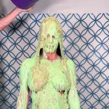We scooped up all the leftovers from that day's shoot, including messes from Sever previous sets, mixed it all into a super-slime, and slimed a butt naked Victoria with it!