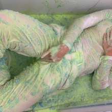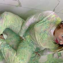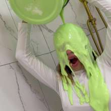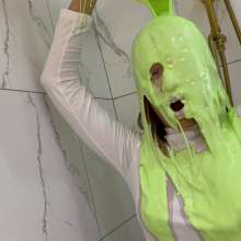 I'm pouring slime all over myself in my white office clothes and shoes! I'm covered in slime from head to toe! All my white clothes are covered in slime, and I'm masturbating passionately in this slime without any underwear! I undress and masturbate again!