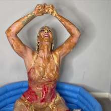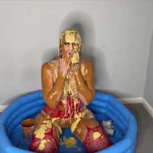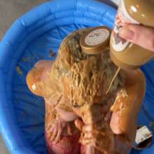 Watch me shampoo myself with peanut butter in some extra slutty lingerie, pour it all over my head and face, and then rub it into my lingerie and tits. Once I am beyond sticky I cover myself in custard too to help me get slimier before my inner slut comes right out and I just have to suck some dick.