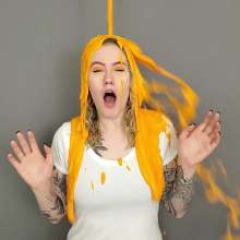 Stephanie stars in this very slime intensive scene. It features her taking 7 different colors of massive, long lasting slimes; one for each color of the rainbow. Each one she gets is from a completely clean start, with Stephanie making sure to have her hair done and makeup set for each and every slime. As the slimings progress along the colors of the rainbow... Stephanie's reactions go from shocked, to accepting, to absolutely loving it and massaging the slime deep into her hair as it covers her. Lots of face up slime taking and hair spreading throughout, and with great open mouth pours in the later half. Stephanie makes this scene another absolute must have for slime fans! After footage shows Stephanie's commentary before and after each sliming.
