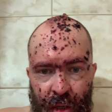 So I do, the thick, chunky purple and seedy goop covers my face and gets caught in my beard.