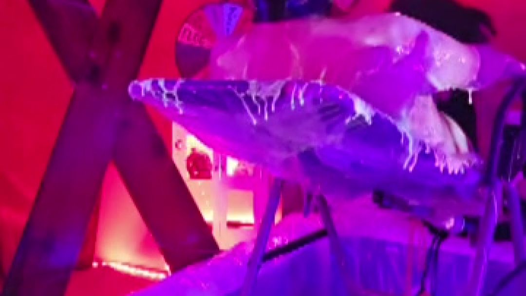 Mistress Mary secures a hooded male slave to an inversion table and proceeds to pour 12 buckets of uv slime over their chastity caged cock. Watch as the UV slime shines in the blacklight and listen to the moans of pleasure without any way to release agonizing the helpless slave!