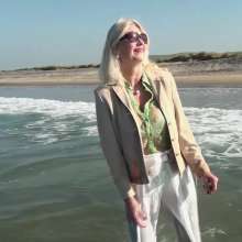 After a lovely day out by the sea we drove down for the day to meet some friends at their house. After a nice morning catching up and enjoying their company we decided to walk along the beach before driving home. It was a relatively warm day and I had dressed in some white cotton baggy trousers, a green top jacket but had out on stockings and green underwear, I was feeling rather naughty. The beach was quite busy with tourists but we did manage to find a quieter spot. I hadn't bought a swimsuit but really wanted to take a quick dip before heading home and anyway it was a quite a long drive and I really needed to pleasure myself in the water.