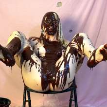 It then that the mess begins with her coating herself in thick chocolate batter. We all know that this makes her horny.
