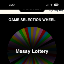 Respin Game Count Wheel +1 game Messy Hot Potato +1 Game Target Game If you don't Reply till Monday at 12:01am CST (15 hours to go) Start a Poll - pick from 5 Games Pyramids Lucky Boxes Messy Poll do top 3 Options Extreme Fill the Tank Pick My Profile Messy Dunk Tank Unknown Messy Dice