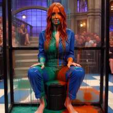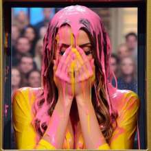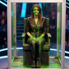 Rachel cringed in shock as the torrent of blue,green,orange gunge came pouring down over her covering her completely as she put her hands over her face to try and hide from the gunge put it wasnt working.