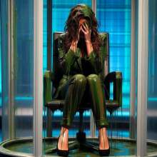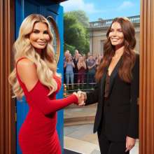 Tiffany walked out on stage over to stephanie and shook her hand they both then sat down at the table.