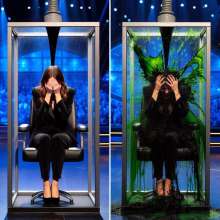 The stage rotated revealing two well dress ladies sat inside two gunge tanks