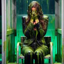 Sophie winced as the device started up and a downpouring of greeny,yellow gunge pour out a open valve above her head and over sophie completely turning her green with gunge.