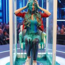 Jessica cringed as a torrent of black,green smooth gunge came pouriing down over a unexpecting Jessica sat in the tank hands over her face as the gunge continues to pour completely covering the MP