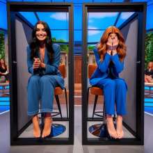 The feed returned back to the studio with tiffany and stephanie laughing well thnks for being a great sport heres your award now its time for u to follow me its time for you to go on the Splatcha wall of fame just take a seat in this photo booth and wait ill hold on to your award.