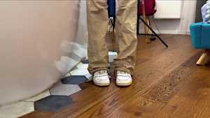 | Fresh from a workout, I'm on the floor stretching wearing a tight maroon compression shirt, short white shorts, and long white socks and my feet righ... | |