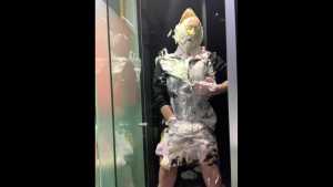 | I'm getting wet in a sheer tight top! And super sexy red leather pants! And of course with heels! It's so hot! report | |