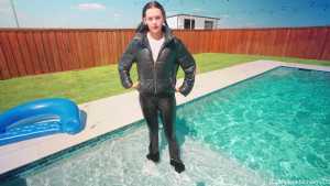 | Jenny Goes for a Swim in Yoga Pants, Shirt and a Jacket TrailerNew From WetlookFashion | |