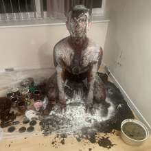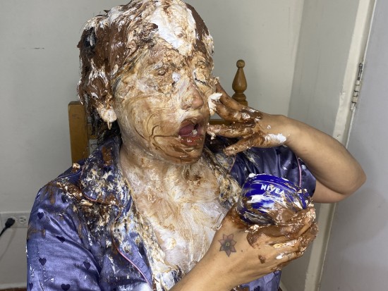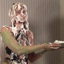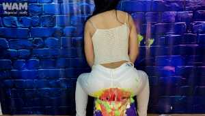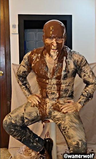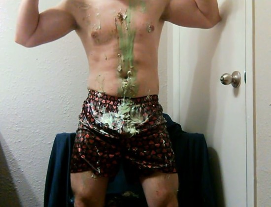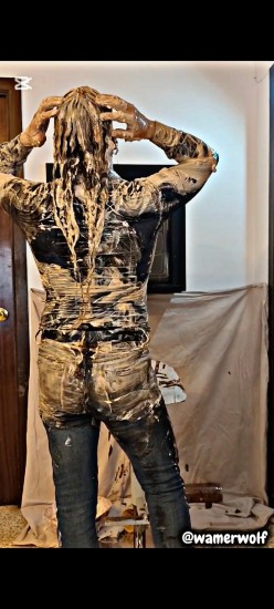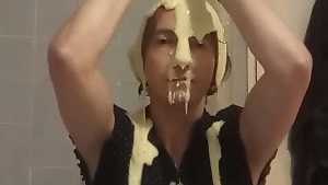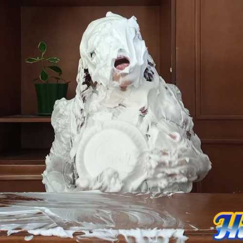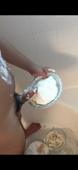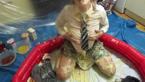| I'm all messy in pudding and shaving foam, masturbating in messy white office pants! Soo hot! | |