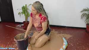 | This fully nude challenge starts with me fully covered in brown clay already. I then try to paint on a bikini with pink clay. I show off my body, thick thighs and sexy ass a... report | |