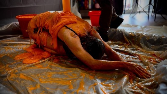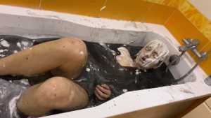I climbed into a bathtub full of black slime! Then I poured shaving foam on myself! Completely naked! |