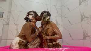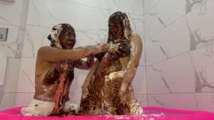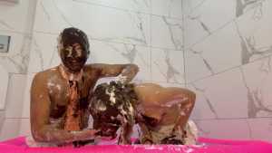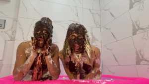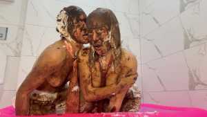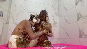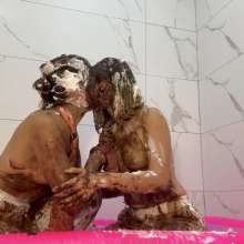 | Diana and I are so messy! Pudding on my head and Diana is dipping me in it! We're kissing passionately and licking each other's nipples in this mess... | |