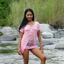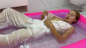 | I got wet in my sexy white lingerie! It became so transparent and everything was visible! And in stockings! | |